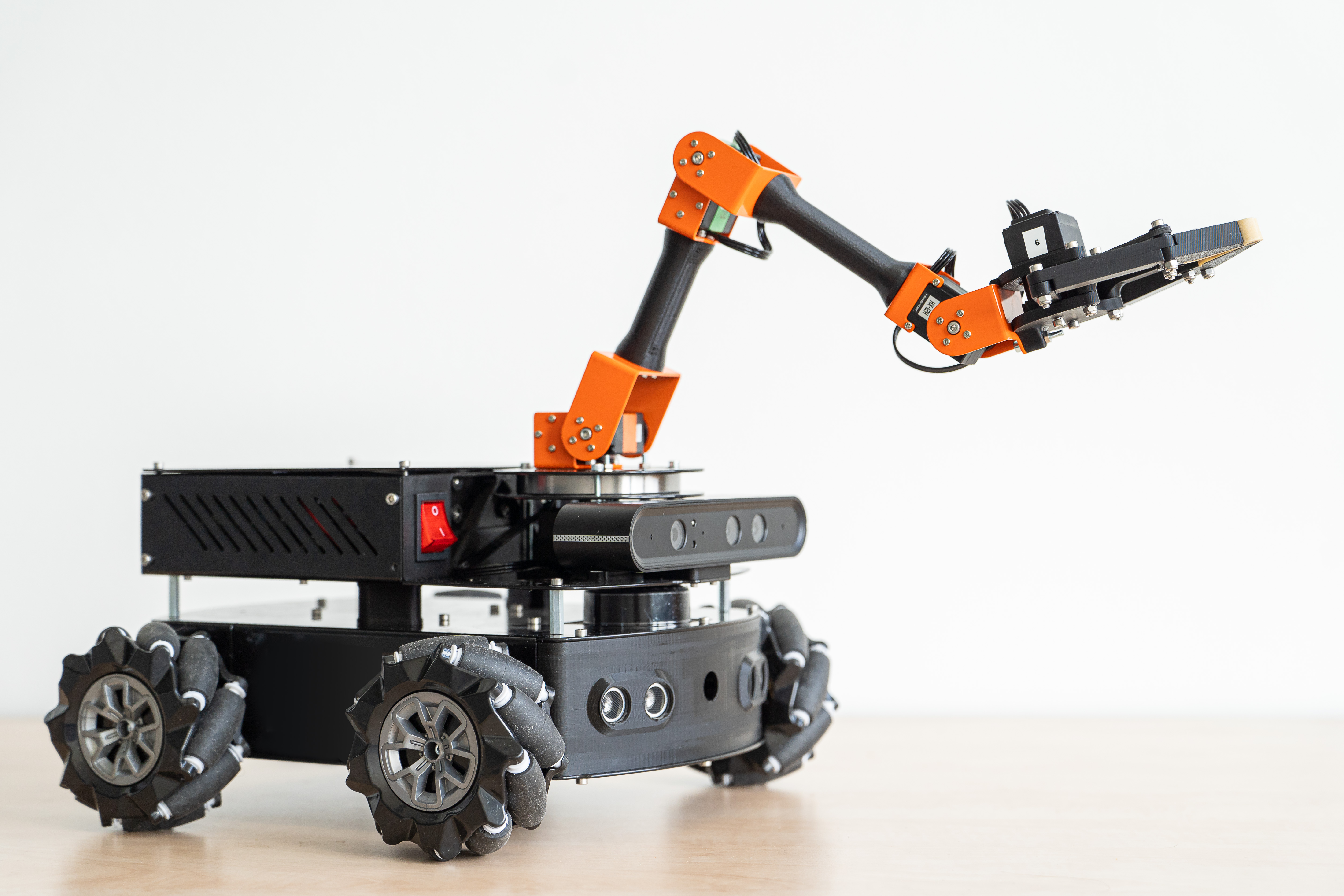 Upgrade your MIRTE robot to a full mobile manipulator. The robot includes a depth camera and 2D lidar. You can control the robot with Nav2 and MoveIt!